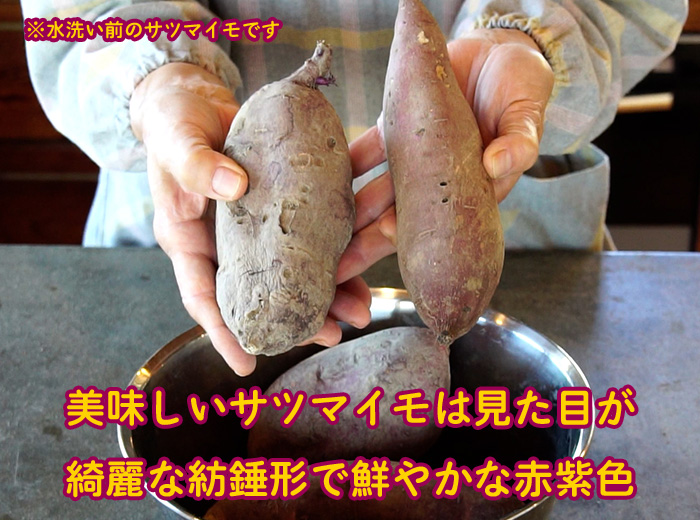 質の良いサツマイモは、色鮮やかな赤紫色できれいな紡錘形